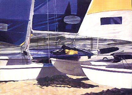 This was painted from a photo taken during a regatta on Isle of Palms, SC.This is the largest of Steven's prints and measures 32 x 40 when framed. The original waterecolor won an award in the American Watercolor Society Annual Exhibition in New York City.