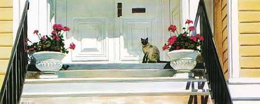 The painting is of a house on lower Church Street. A Siamese cat was added to create a center of interest.