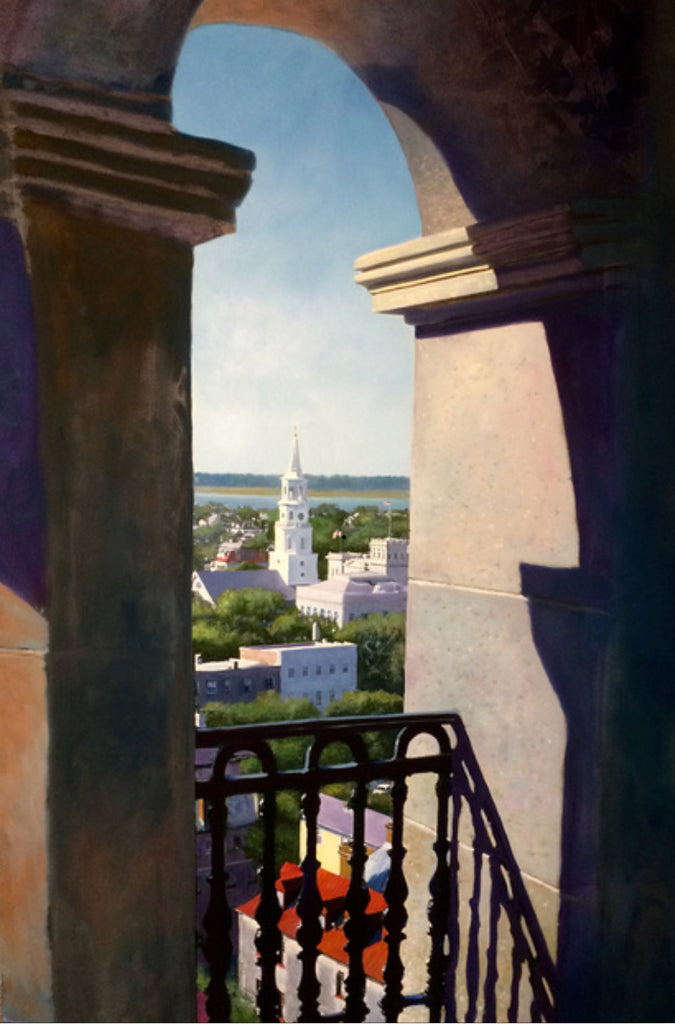 Canvas print of my painting that will represent South Carolina in the 2018 Best of America exhibition . Also available on paper for $200 and hand enhanced on canvas for $750 . Each order will receive a complimentary signed print of “ Steeple View “ which depicts the opposite view from St Michaels Church , a $100 value .